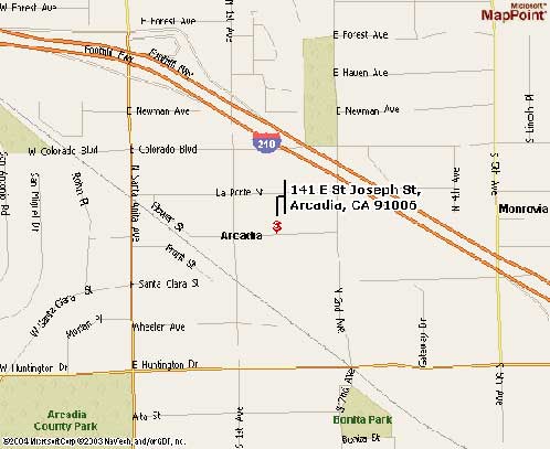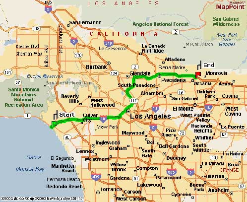 Start: Depart Santa Monica Frwy, Santa Monica, CA 90401 on SR-1 [Lincoln Blvd] (South-East) 0.1 1: Turn LEFT (North-East) onto Olympic Blvd 0.1 2: Take Ramp (LEFT) onto I-10 [Santa Monica Fwy] towards I-10 / Freeway / Los Angeles 12.4 miles 3: Take Ramp (LEFT) onto SR-110 [Pasadena Fwy] towards CA-110 / Pasadena 4.2 miles 4: Turn LEFT onto Ramp towards I-5 / Golden State Fwy / Sacramento 0.3 5: Take Ramp (LEFT) onto I-5 [Golden State Fwy] 1.6 miles 6: Take Ramp (RIGHT) onto SR-2 [Glendale Fwy] towards CA-2 / Glendale Fwy North / Glendale 3.5 7: Take Ramp (RIGHT) onto SR-134 [Ventura Fwy] towards CA-134 / Pasadena 5.3 8: Merge onto I-210 [Foothill Fwy] 6.4 9: Turn RIGHT onto Ramp towards Santa Anita Ave / Arcadia 0.2 10: Turn RIGHT (South) onto N Santa Anita Ave 0.1 11: Turn LEFT (East) onto E Colorado Blvd 0.2 12: Turn RIGHT (South) onto N 1st Ave 0.1 13: Turn LEFT (East) onto E St Joseph St 0.1 End: Arrive 141 E St Joseph St, Arcadia, CA 91006 |